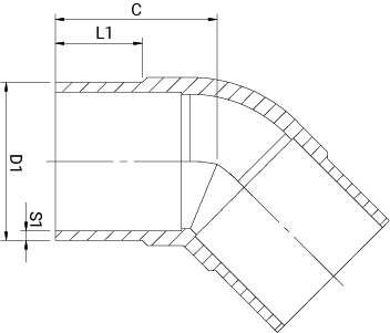 Alkūnė 45° pagaminta iš didelio tankio polietileno PE100-RC tipo medžiagos.