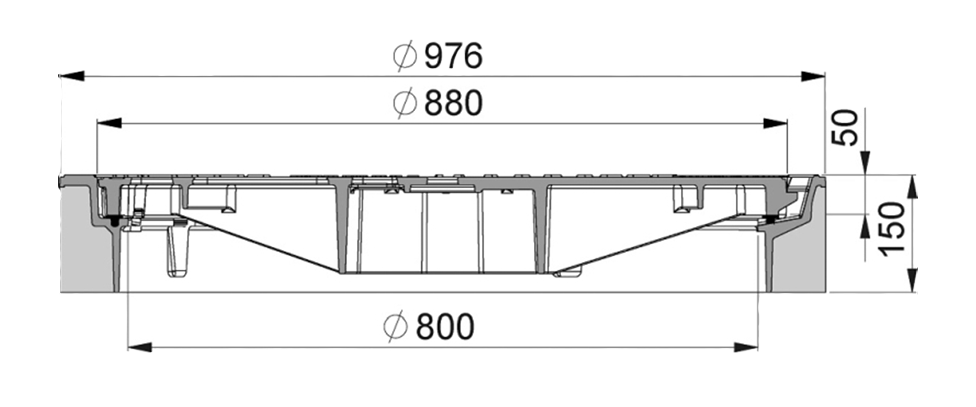 Stacionaraus tipo dangtis su betonu ir rėmu, be ventiliacijos, įdėtu į betoną, su didelio dydžio prieigos anga, DN 800 [mm], atitinka EN 124-2.