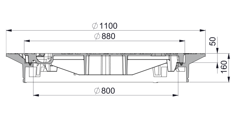 Plaukiojančio tipo kaliojo ketaus liuko perdanga (rėmas su dangtis) su didelio dydžio prieigos anga, DN 800 [mm], atitinka EN 124-2 reikalavimus.