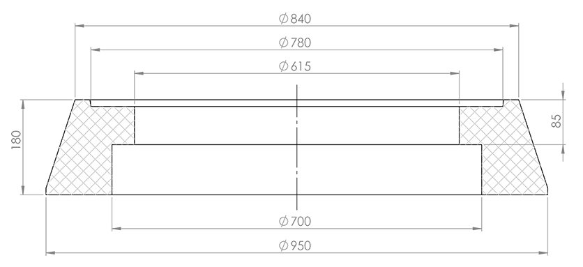 Montuojant polimerinius šulinių dangčių elementus, vieną virš kito, ant polimerinio elemento paviršiaus naudokite silikoninę mastiką, Ø 3-5 mm dviem juostelėmis!