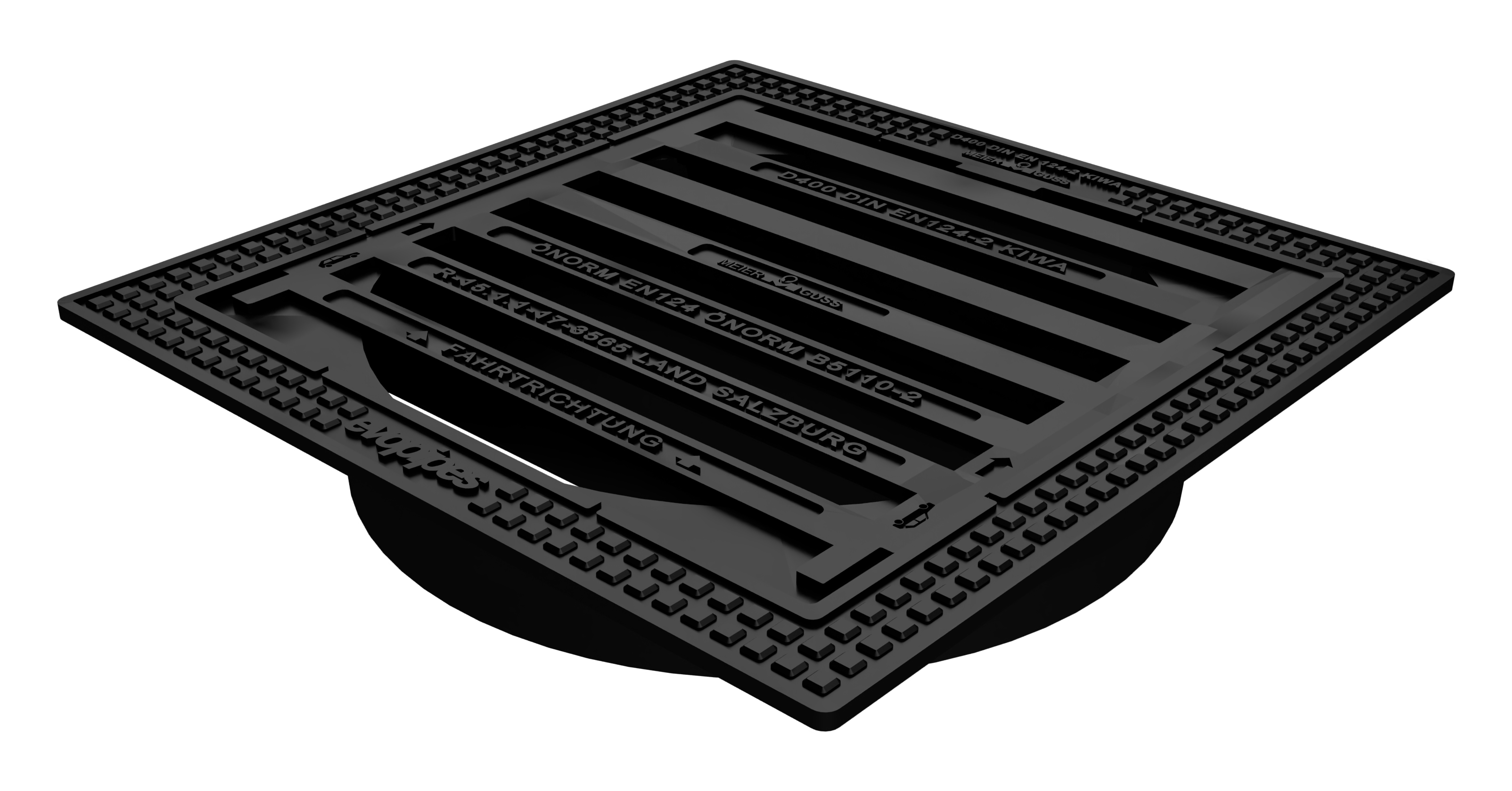 Kampuota kaliojo ketaus liuko perdanga (rėmas su grotelėmis), 500x500 [mm], apkrovos klasė D400 (40t) attinka EN 124-2 standarto reikalavimus