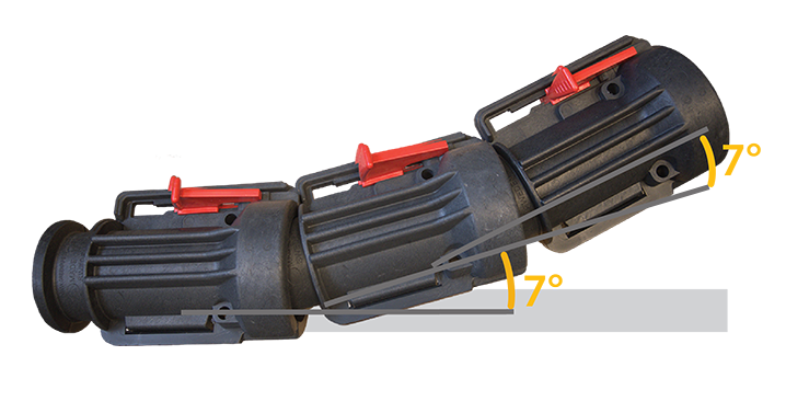 EVOCAB SPLIT N 1250 išardomuose apsauginiuose kabelių vamzdžiuose integruota jungčių sistema ir užraktai, užtikrinantys patogų jungimą, nenaudojant jokių įrankių.