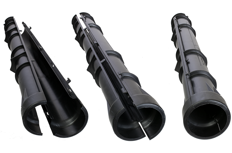 EVOCAB SPLIT N 450 išardomi apsauginiai vamzdžiai su užraktais yra skirti remontuoti nutrauktą kabelių liniją ir užtikrinti mechaninę kabelių apsaugą vietose, kuriose negali būti naudojami kitų tipų apsauginiai vamzdžiai. Apsauginius vamzdžius galima įkasti į žemę arba naudoti antžeminėse sistemose.