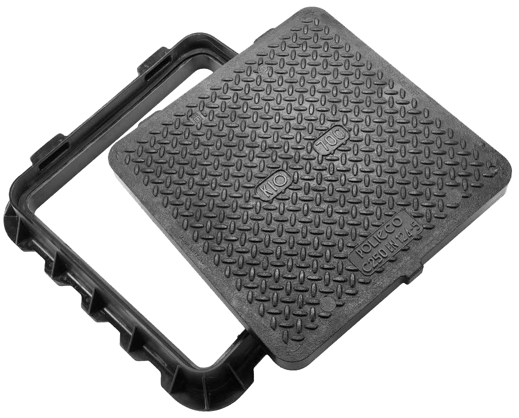 - Kalaus ketaus arba kompozitiniai dangčiai B125, C250 arba D400 klasė